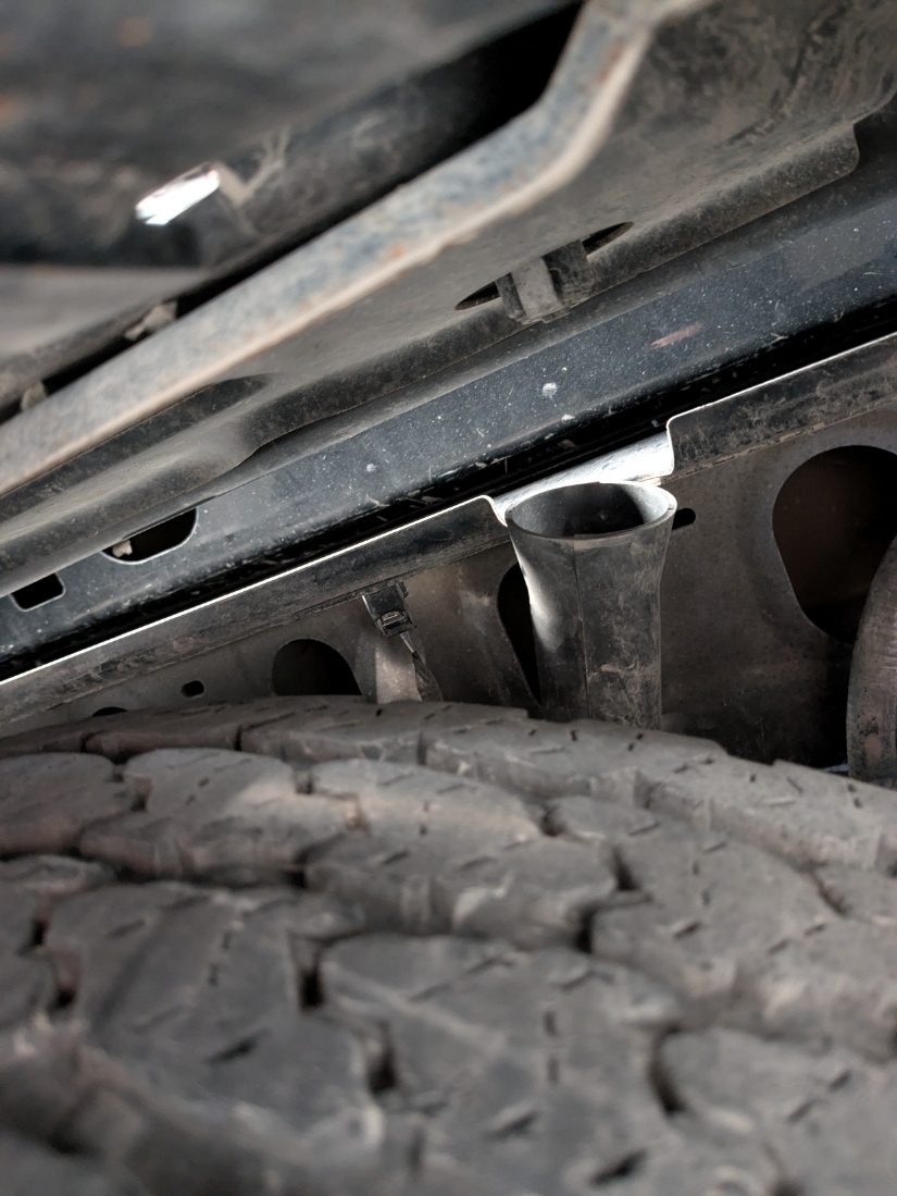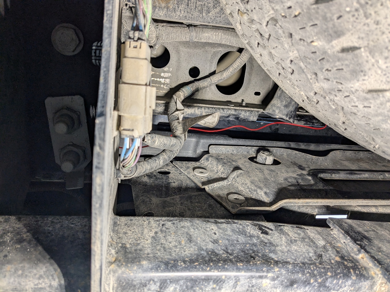 From underneath the truck, locate the center marker connector and unplug it by depressing the locking tab.
