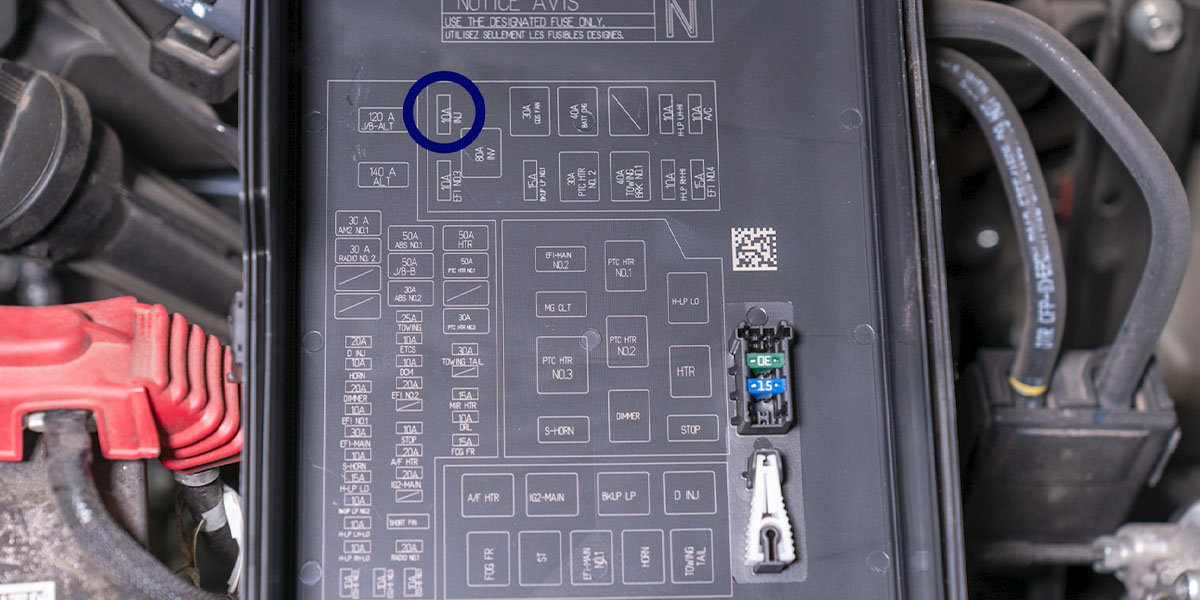 - Use the fuse puller to remove the 10A fuse labeled "INJ" in the fuse box.